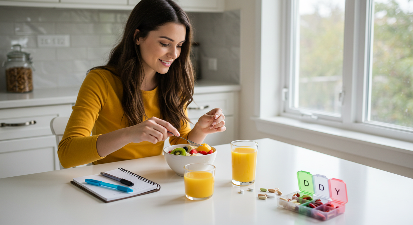 다양한 채소, 과일, 견과류를 식단에 포함시키고, 부족한 영양소는 비타민 보충제로 채워보세요.